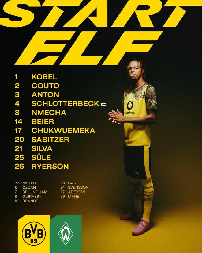 北京时间1月14日3:30,德甲第17轮继续进行,多特蒙德坐镇西格纳-伊杜纳公园球场迎战不莱梅,本场主裁判为希伯特,赛前双方首发出炉。